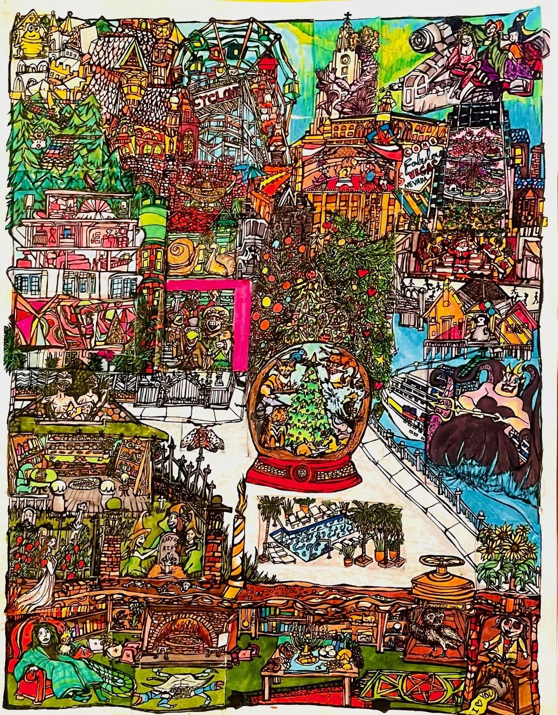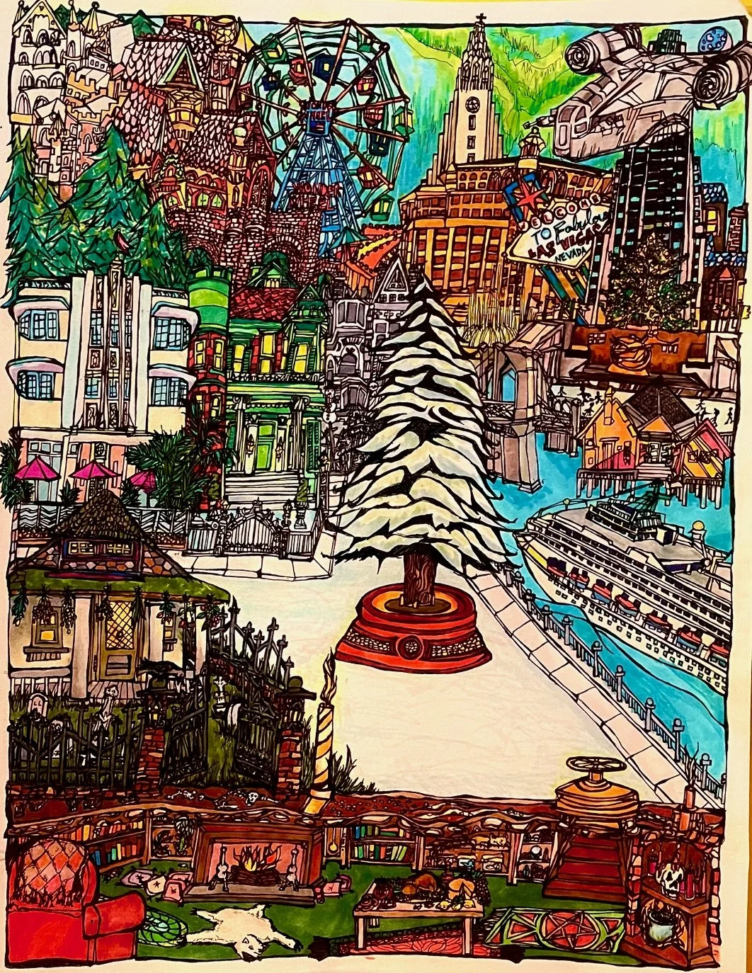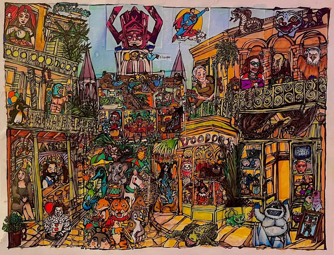Every year I ask about a hundred of my closest friends one question. Based on their answers I illustrate a composite birthday card that includes a custom illustration for everyone in one integrated drawing. I send everyone a print of the composite drawing card in the actual mail in celebration of their birth.